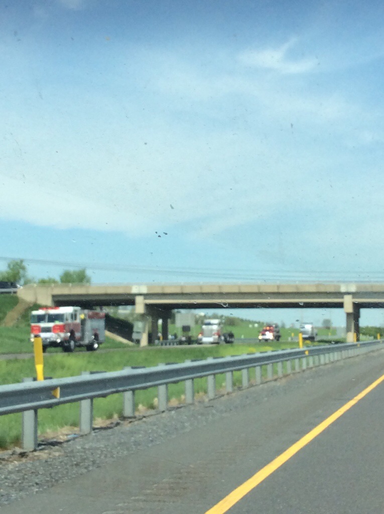 We waited in the van while it misted over our plastic covered slab of concrete. Kobe thought it was quite adventurous and made ramps out of the dashboard for his trucks.