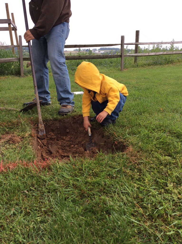That was our day yesterday. Full of conversation, misty rain, cold toes, digging, mixing, dumping…and home to hot coffee and popcorn.