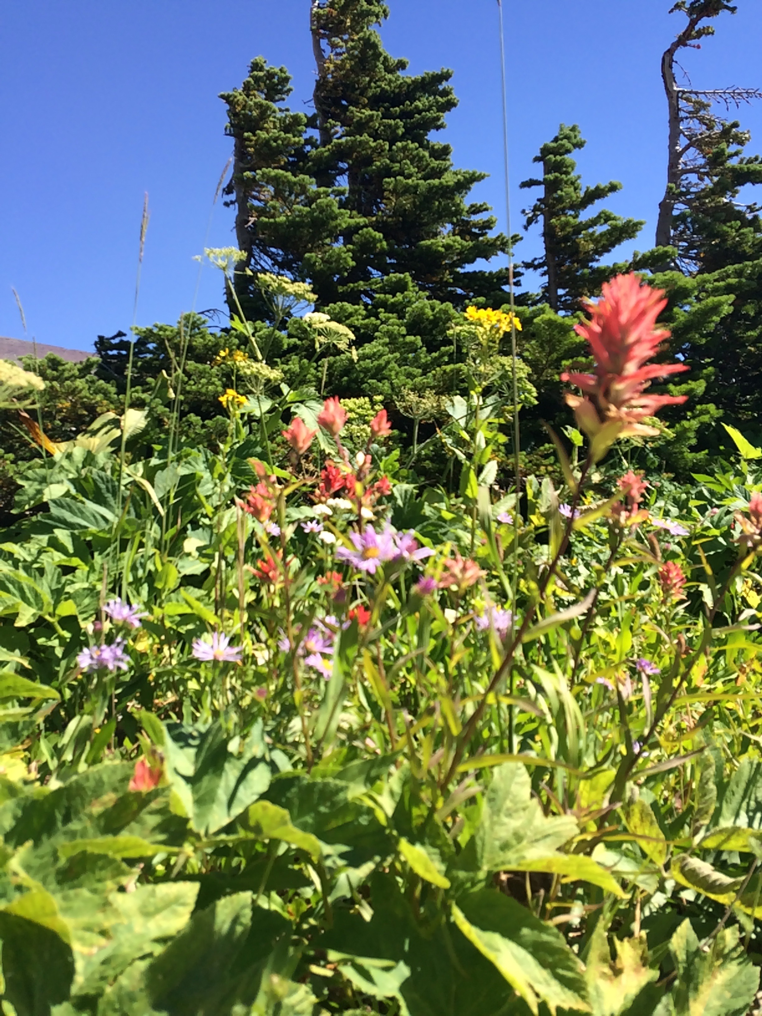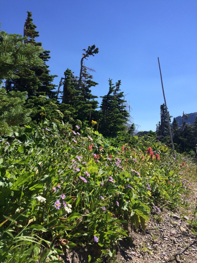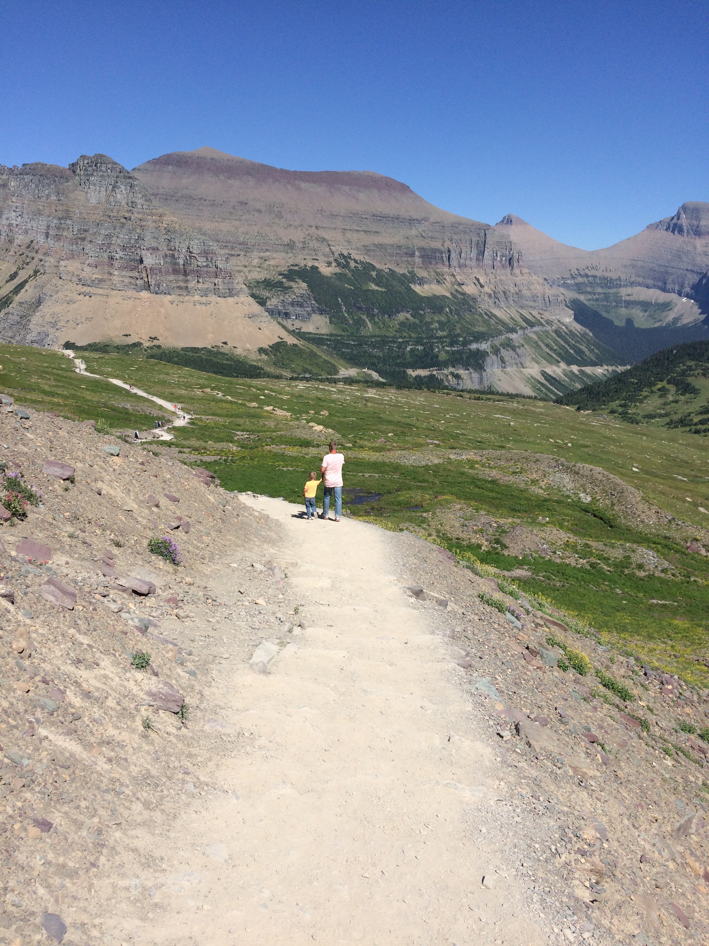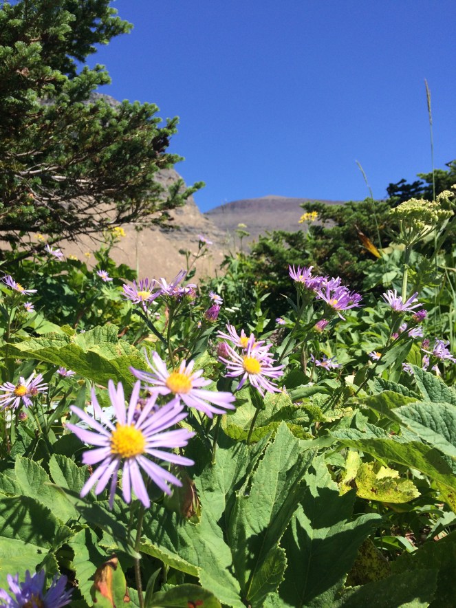 The mountains on top of Going To The Sun road were covered in wildflowers and the day was perfect for a little hike back toward Hidden Lake.