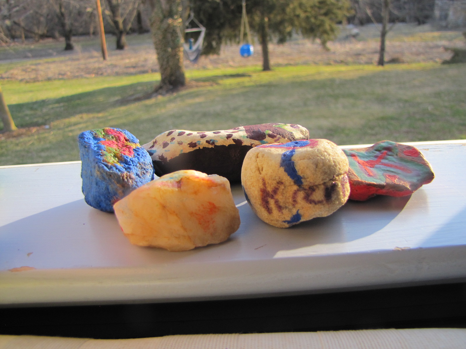 They made me happy and I remembered how pleased she was to paint them. How she beamed and wiggled when Stephen complimented her on how awesome it was. But part of me was sad too. Because everything she did was through me. I helped her hold her brush. I dipped it in paint. I nudged her hand forward to swipe across the page.