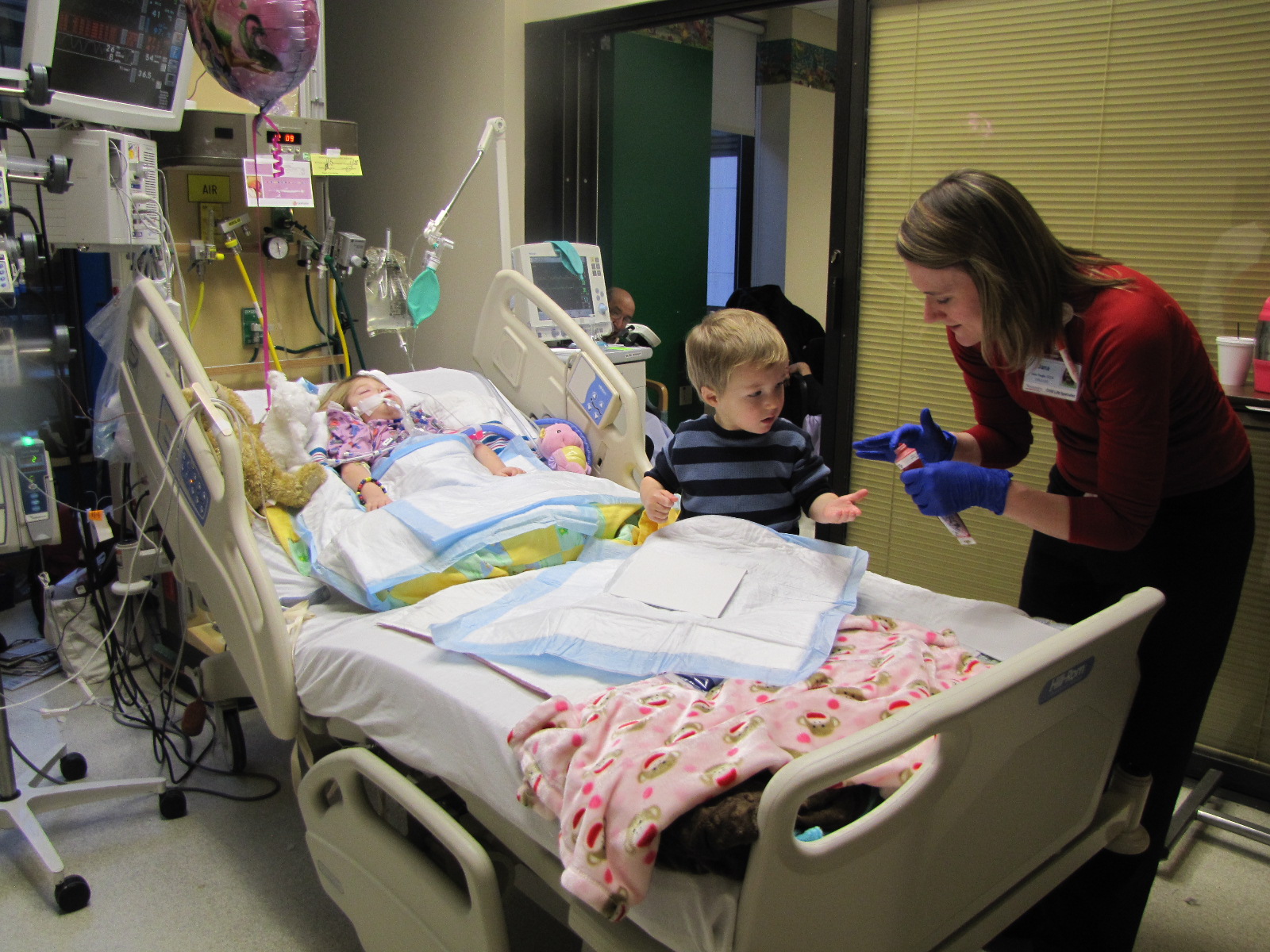 Kierra LOVED the ride up to PICU. Arms thrown wide out, little head turning happily from side to side, she was thrilled with the whoosh of air over her face. No one was messing with her face or poking needles into her arms and feet.She didn’t care that she was causing alot of rapidly flying hands and feet. She was a little Princess, snuggly with her pink blanket, having the ride of her life.